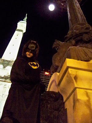 Word had it that there was fun to be had down in Broad Ripple, so we hailed a cab and headed that way. It was the only thing we did that wasn't within walking distance. Anyway, we ended up just traversing the length of the district seeing the thousands of costumes and listening to the 'music' coming out of various clubs. People in the bars would hold up signs as you walked by ranking your costumes from 1-10...I'm glad to say Jenny and I both scored highly. ha! Also, just fyi, guys dressed as the Joker really, really get a kick of of seeing a girl dressed as the Joker.